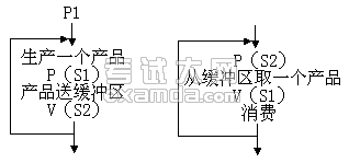 ●某系统中有一个缓冲区,进程P1不断地生产产品送入缓冲区,进程P2不断地从缓冲区中取产品消费。假设该缓存区只能容纳一个产品。进程P1与P2的同步模型如下图所示: